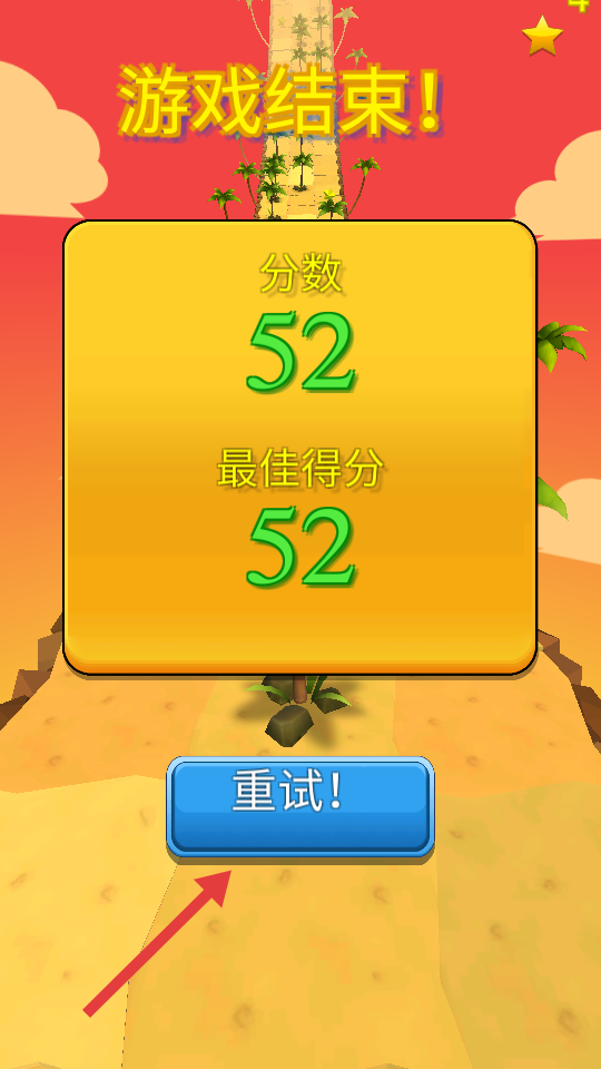 4、游戏结束后,点击蓝色【重试!】按钮,可重新挑战跑酷。