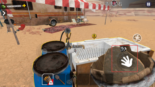 4、前往清洗区域,点击【洗】,完成矿石的清洗步骤,推进流程。
