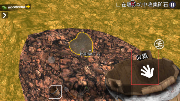 3、点击【收集】,将挖取出的矿石收入容器,完成该环节的矿石收集。