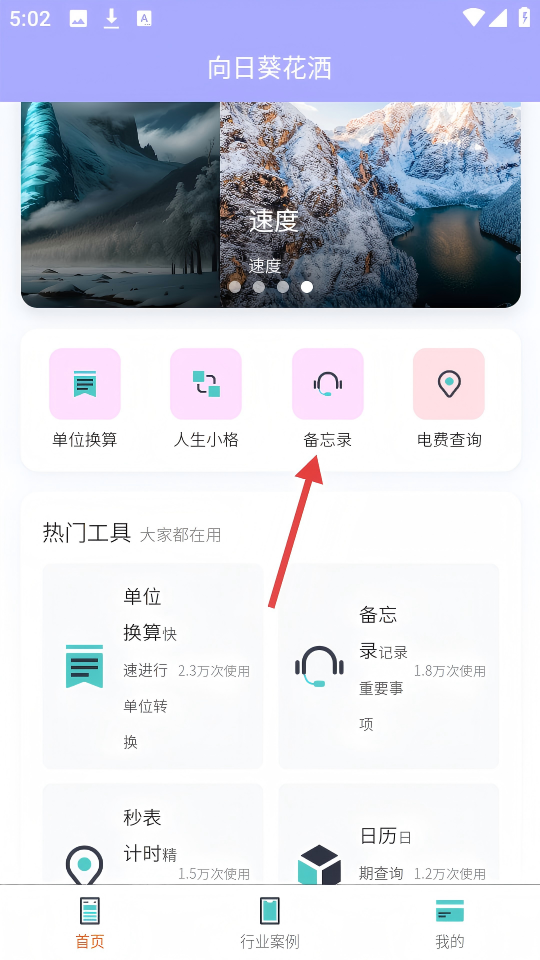 向日葵花洒是一款整合实用生活工具与多元行业案例的综合服务工具,面向日常用户与职场学习者,以功能实用与体验便捷为核心。它将单位换算、备忘录、电费查询、秒表等高频工具直观呈现,覆盖生活各类场景需求,同时推送大量多领域行业案例,以清晰图文展示细节。用户可快速调用工具解决日常问题,也能浏览案例汲取经验,操作简单且覆盖场景广,为生活与成长提供双重助力。