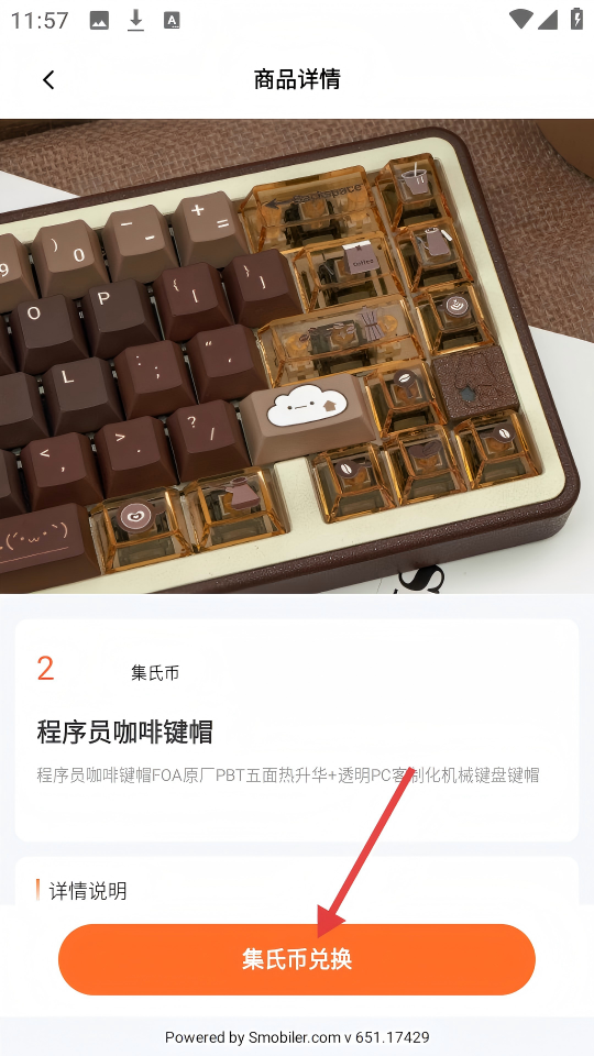 3、在商品详情页,点击橙色的【集氏币兑换】按钮。