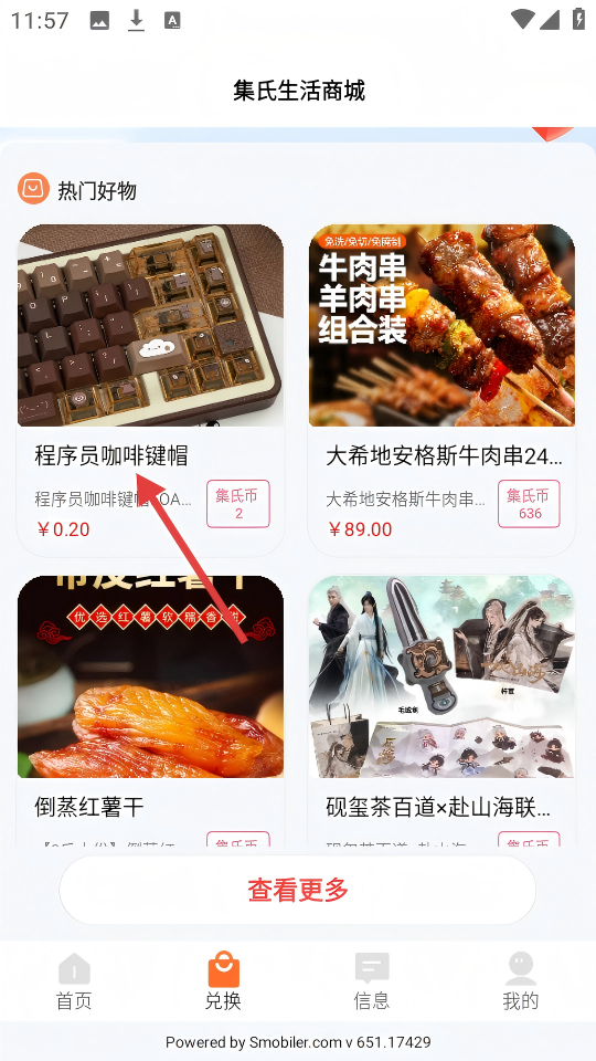 2、在集氏生活商城的【热门好物】区域,点击【程序员咖啡键帽】,进入商品详情页。