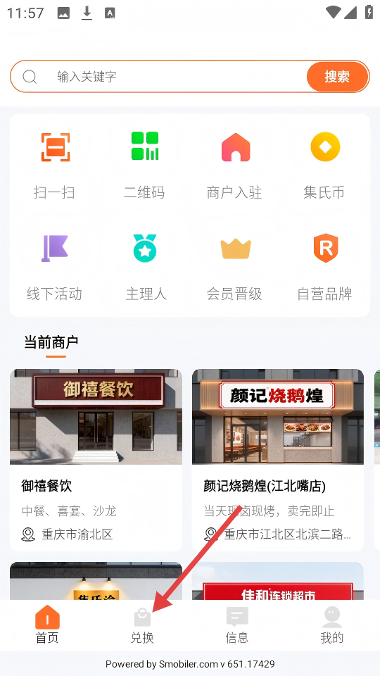 1、点击页面底部的【兑换】选项,进入兑换相关页面。