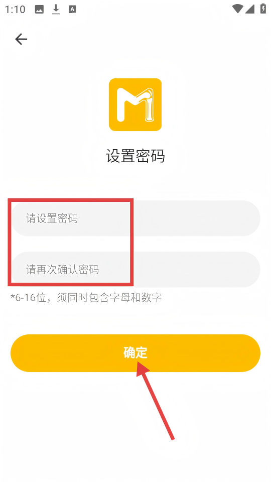 4、在【设置密码】页面,填写【请设置密码】和【请再次确认密码】后,点击【确定】按钮完成密码设置。