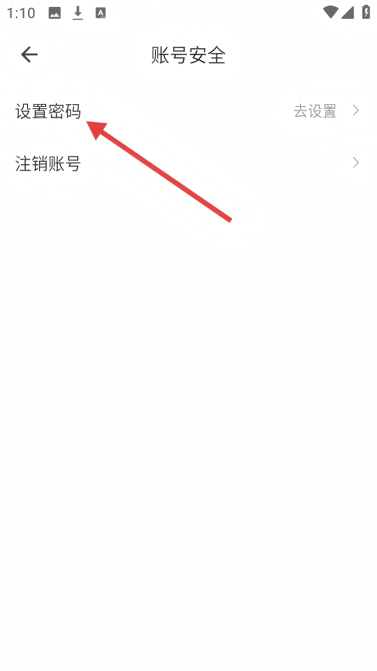 3、在【账号安全】页面,点击【设置密码】,进入设置密码页面。