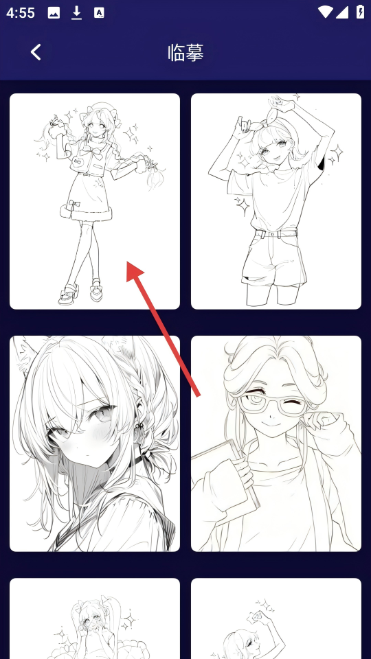 3、进入【临摹】页面后,选择想要临摹的线稿进行创作。