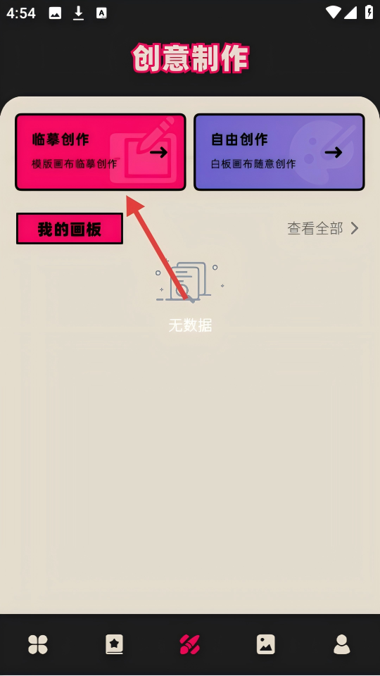 2、在【创意制作】页面中,点击【临摹创作】选项。