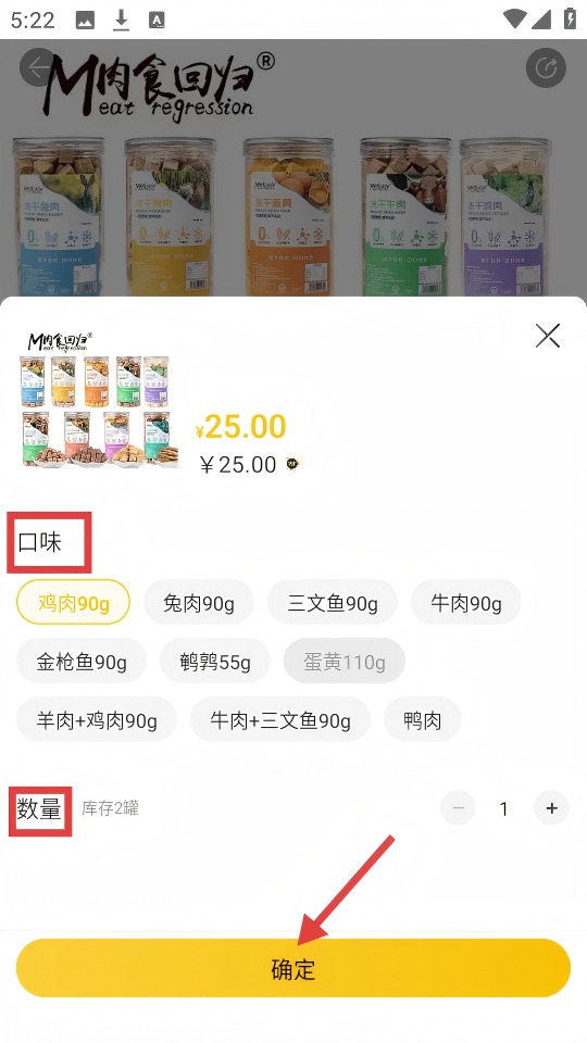 4、选择【口味】和【数量】后,点击【确定】按钮。