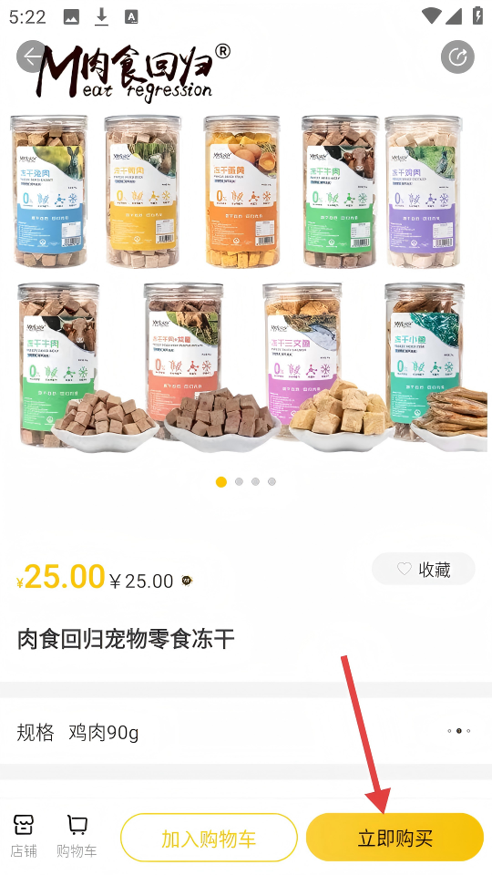 3、在【肉食回归宠物零食冻干】商品详情页,点击【立即购买】按钮。