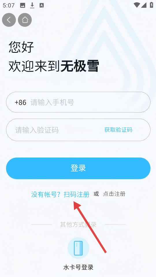 2、在登录界面,点击【扫码注册】,进入扫码页面。