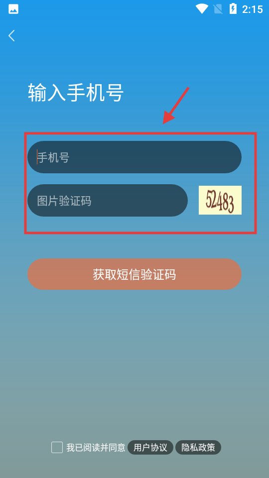 3、填写【手机号】和【图片验证码】,点击【获取短信验证码】。