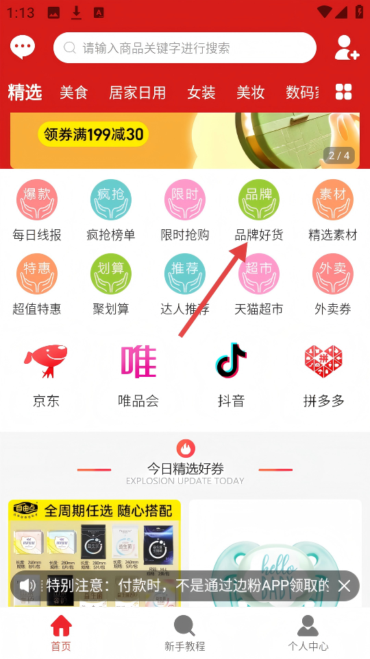 1、点击首页的【品牌好货】,进入品牌好货页面。