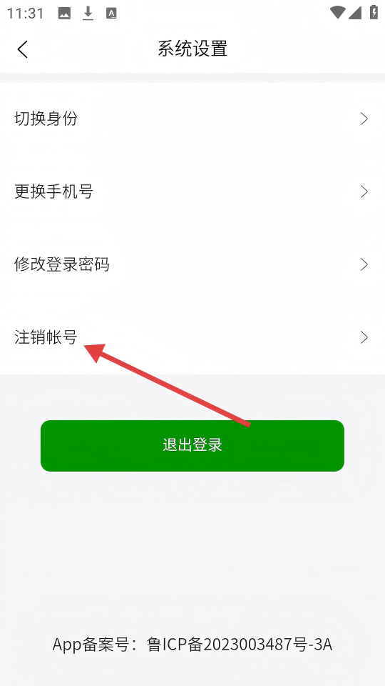 3、在【系统设置】页,点击下方【注销帐号】选项。