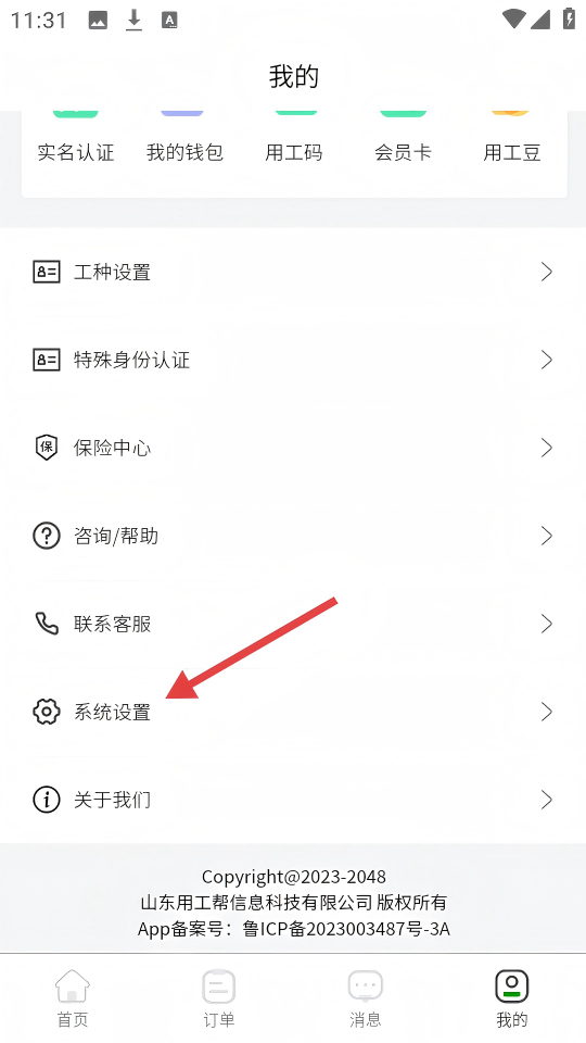 2、在【我的】页,点击【系统设置】选项进入设置页。