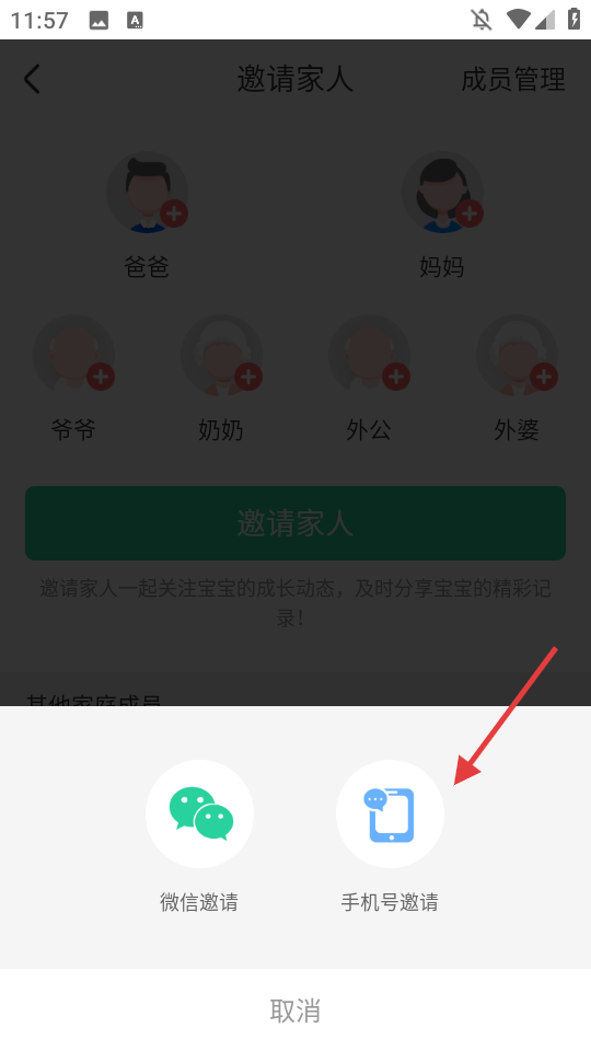 1、在首页点击【邀请家人】功能,进入邀请家人流程。