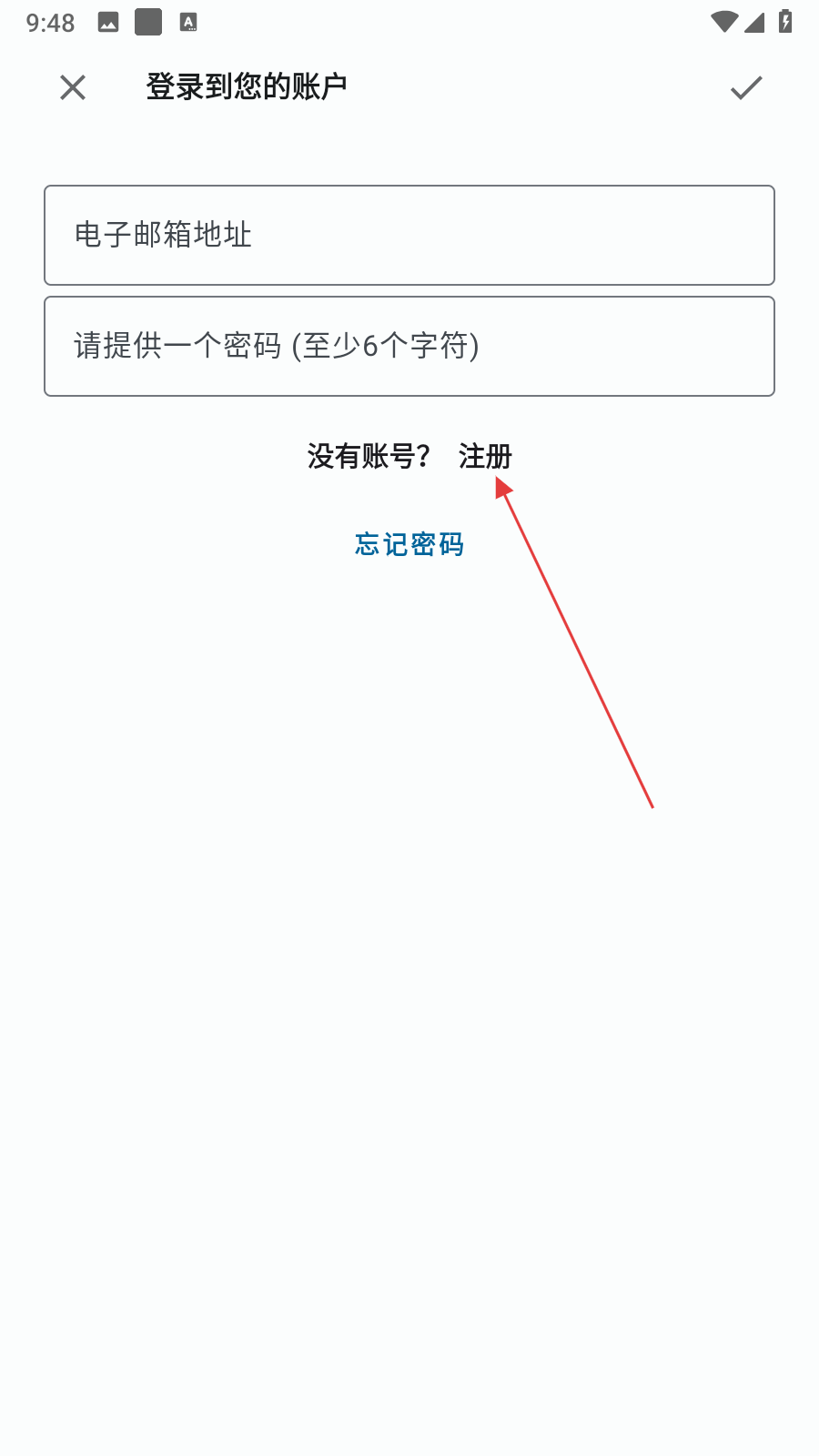 3、在登录界面,点击【注册】按钮,进入创建账户页面。