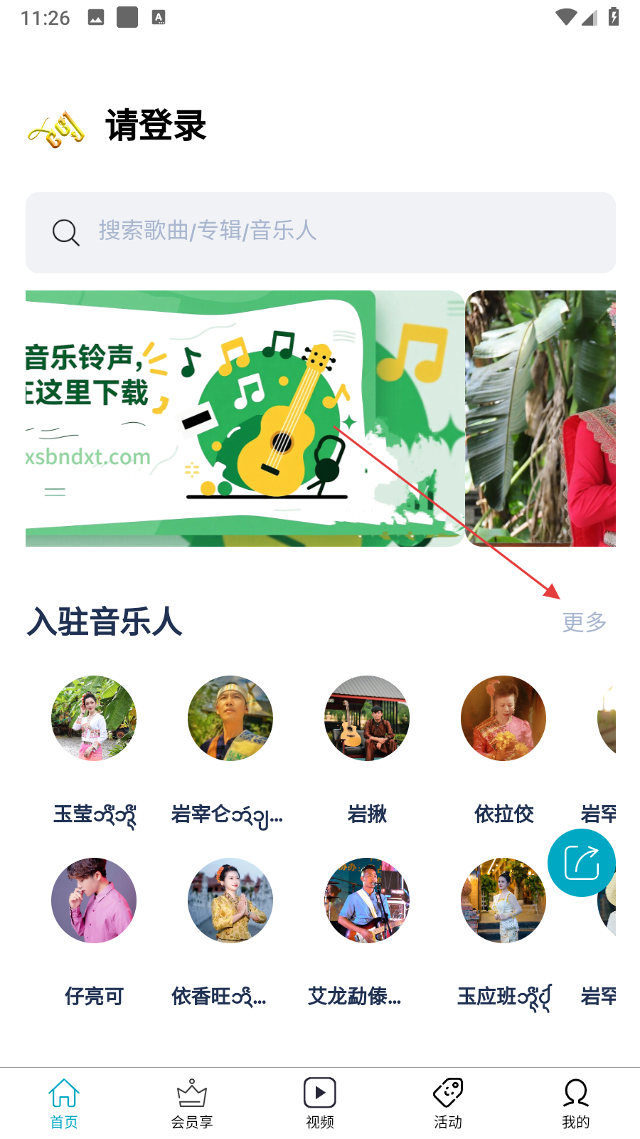 1、在首页,点击入驻音乐人右侧的【更多】,进入歌手列表页面。