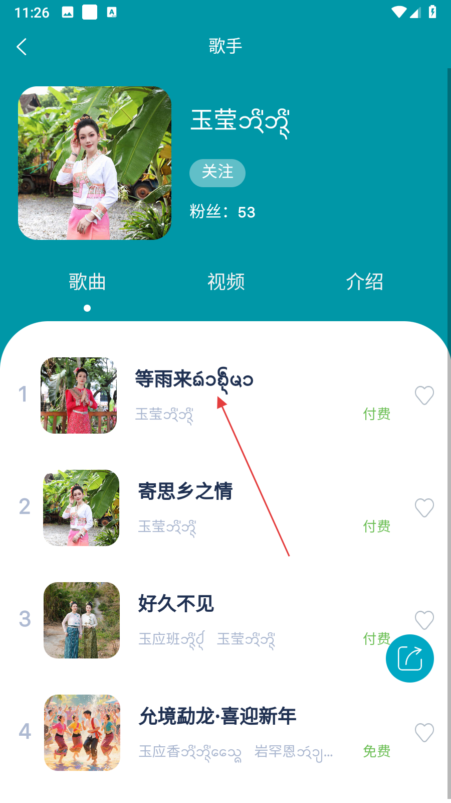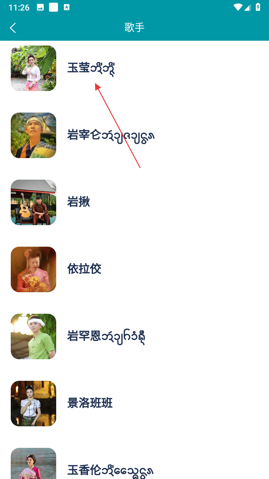 2、在歌手列表页面,点击【玉莹】,进入该歌手的个人页面。