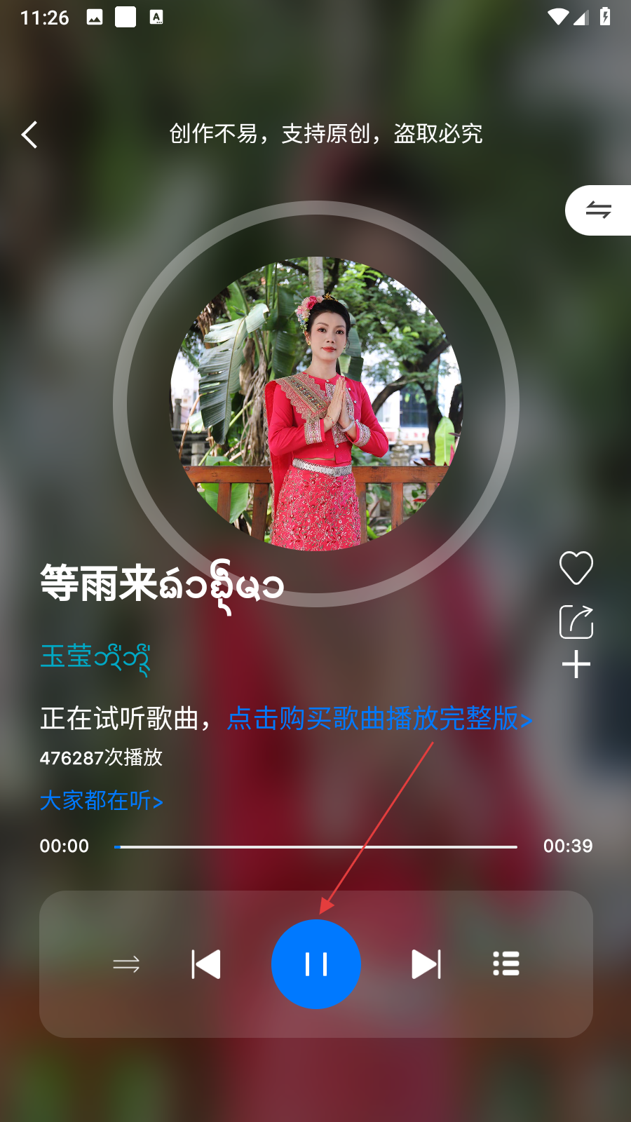 4、在歌曲播放页面,即可【试听歌曲】,体验民族音乐的魅力。
