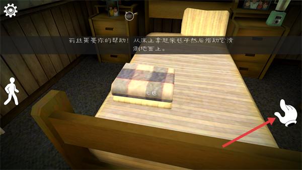 1、首先玩家需要将被子叠好拿在手中,这是玩家离开房间的关键的道具。