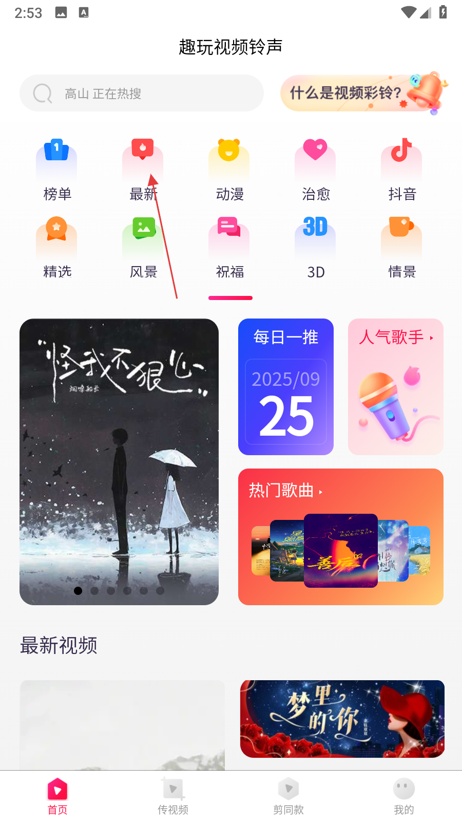 1、在趣玩视频铃声首页,点击【最新】分类,进入最新视频页面。