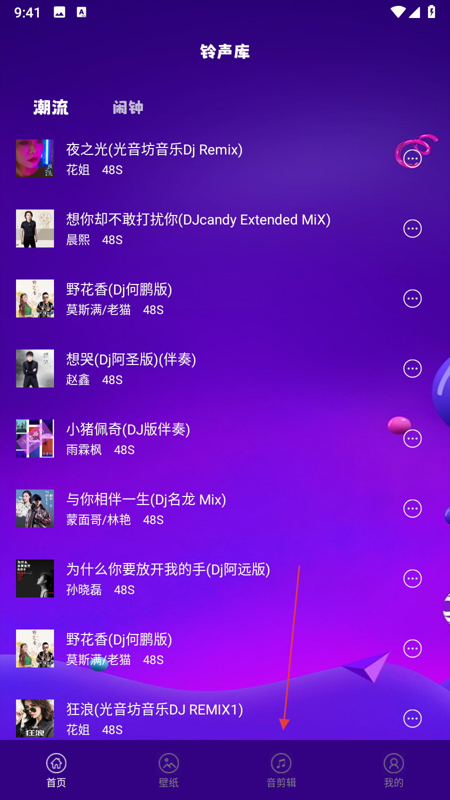 1、在铃声库页面,点击底部【音剪辑】,进入音频剪辑页面。