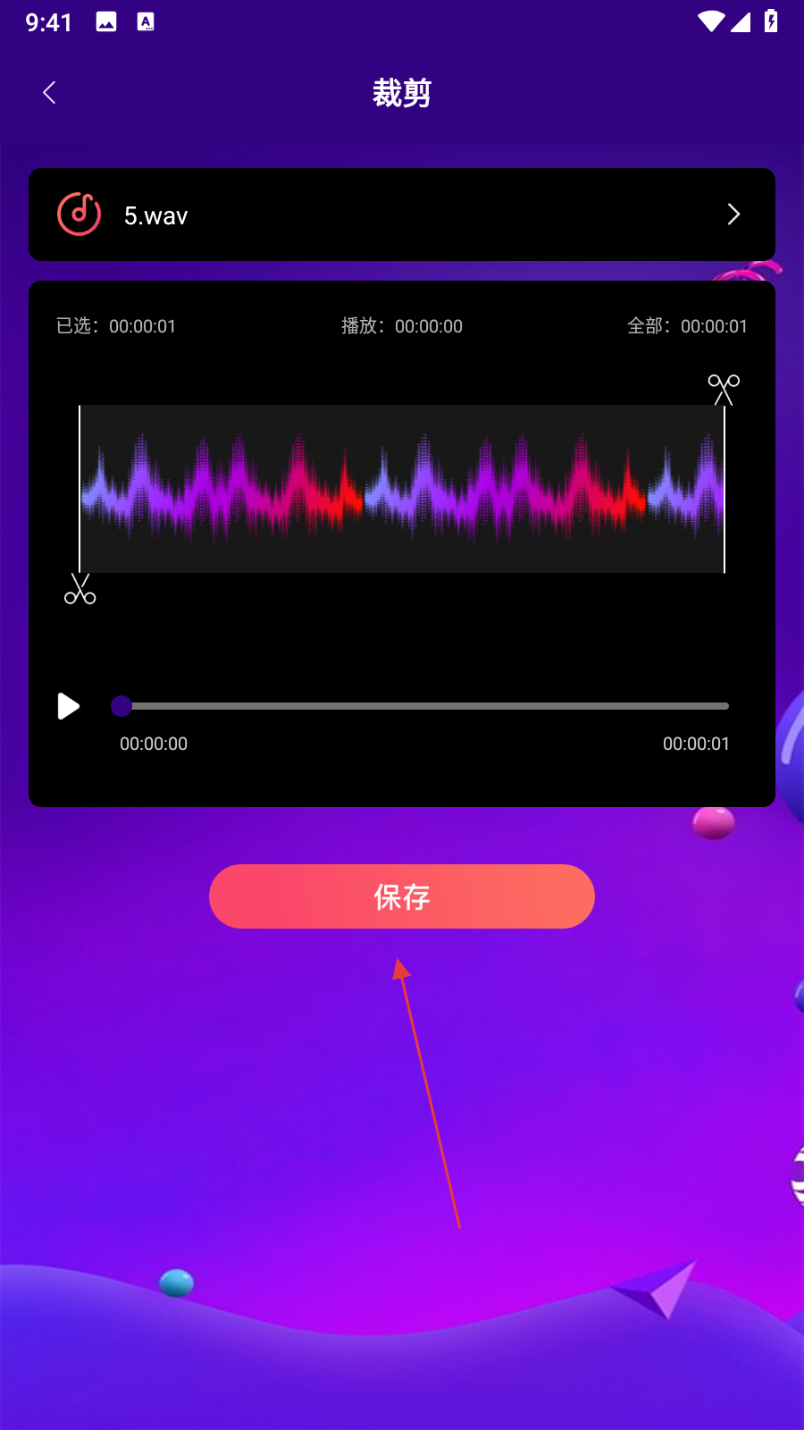 4、在裁剪页面,对音频进行裁剪后,点击【保存】,即可完成音频裁剪操作。