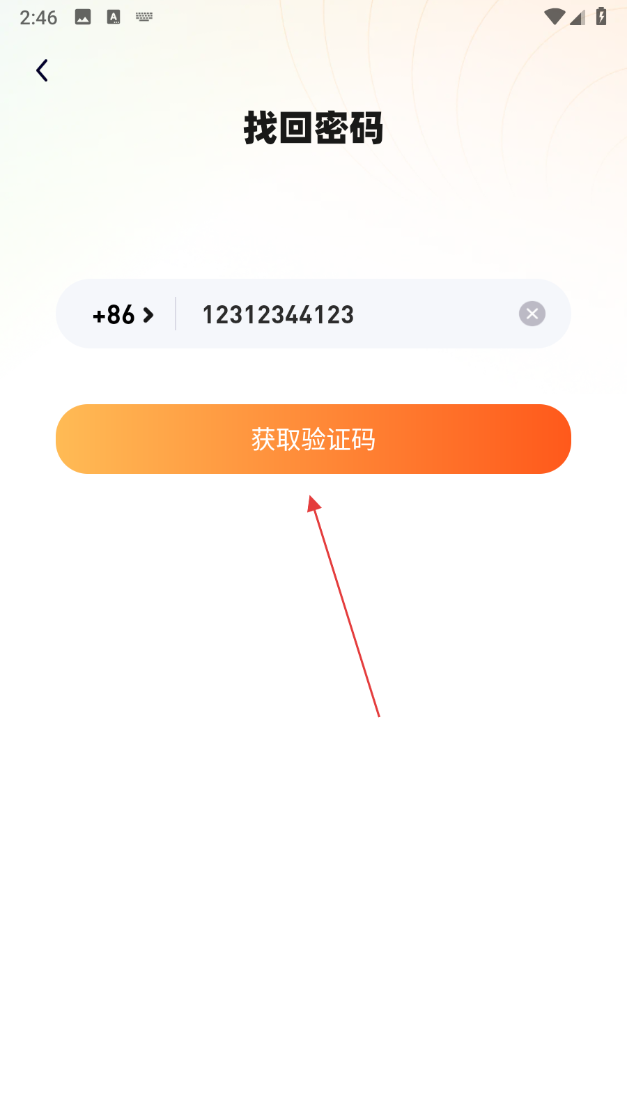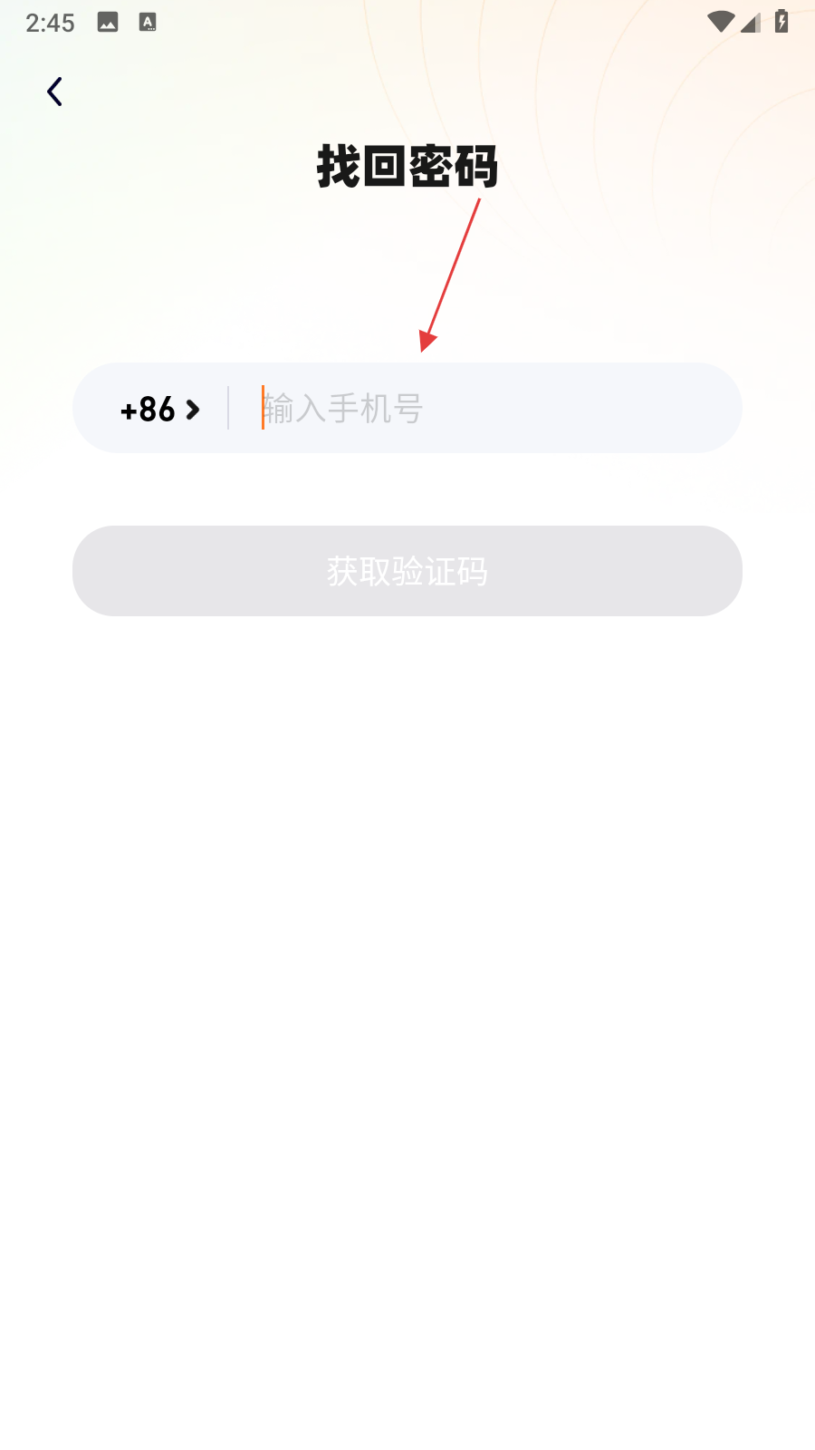 4、输入手机号后,点击【获取验证码】,即可获取验证码以找回密码。