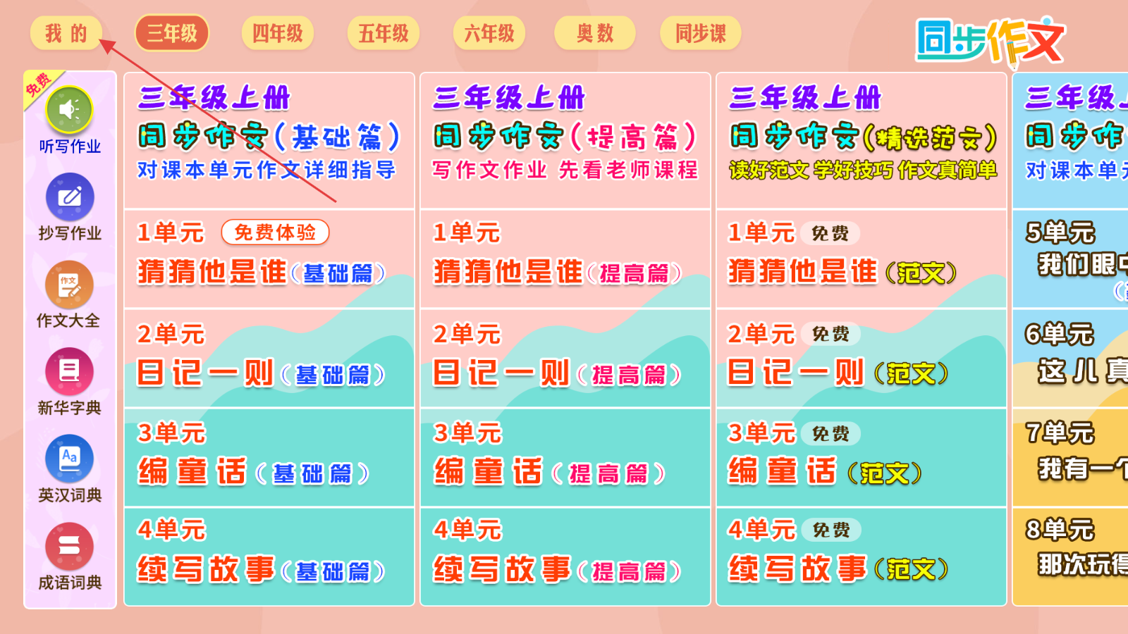 1、在作文学习主界面,点击左上角【我的】,进入个人相关页面。