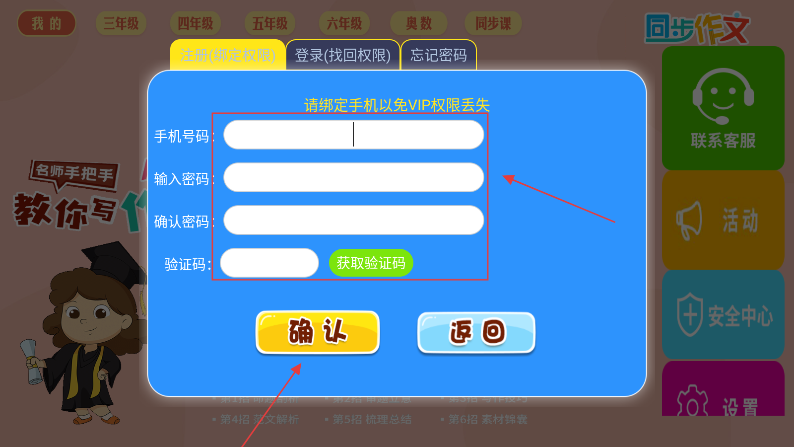 4、填写【手机号、密码、确认密码、验证码】,点击【确认】即可完成注册。