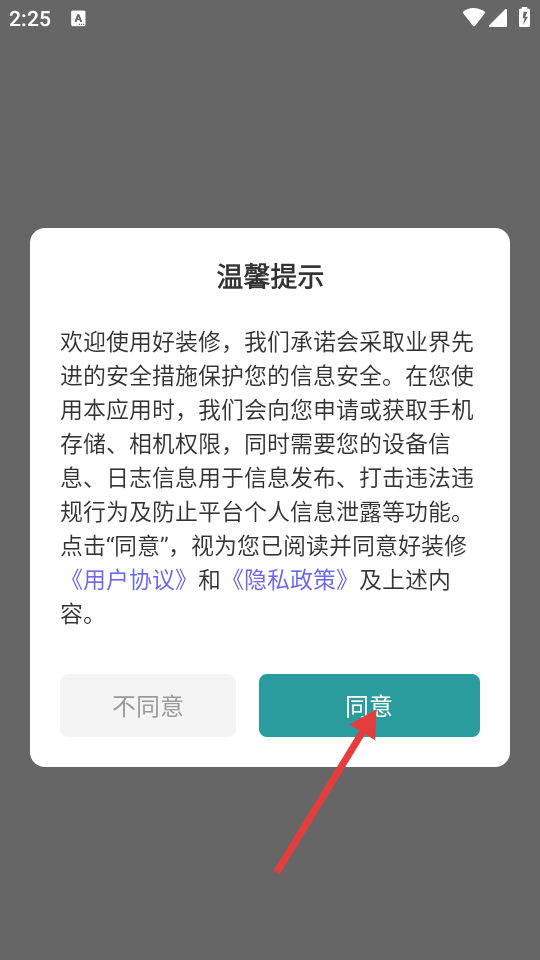1、首次使用应用时,会弹出温馨提示弹窗,点击【同意】。