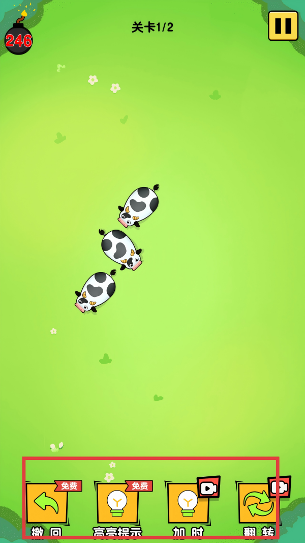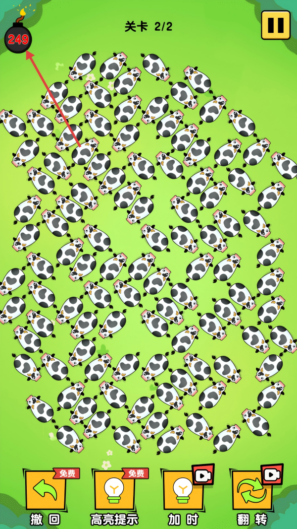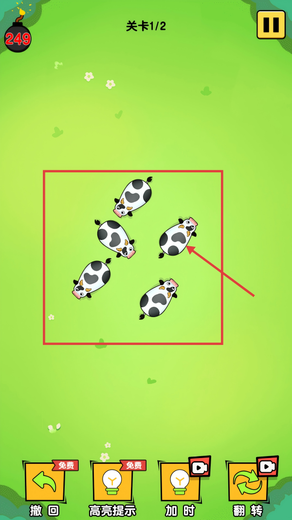 2、在关卡中,点击不同朝向的奶牛,使其与其他奶牛朝向一致。