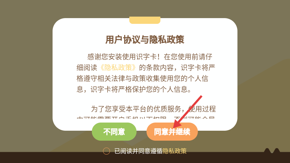 1、首次打开APP,会弹出用户协议与隐私政策弹窗,仔细阅读后点击【同意】。