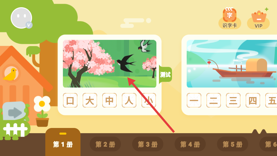 2、在主界面,可看到按册划分的识字内容列表,根据学习进度选择对应册数。