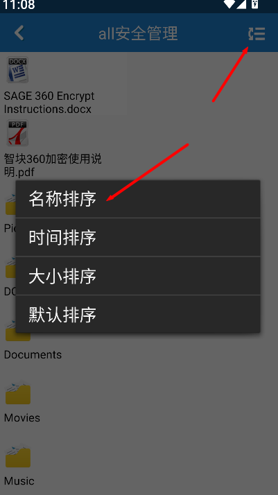 3、在文档管理页面中,可根据文件名称进行排序,便于快速查找目标文件,提高加密文件的整理与管理效率。