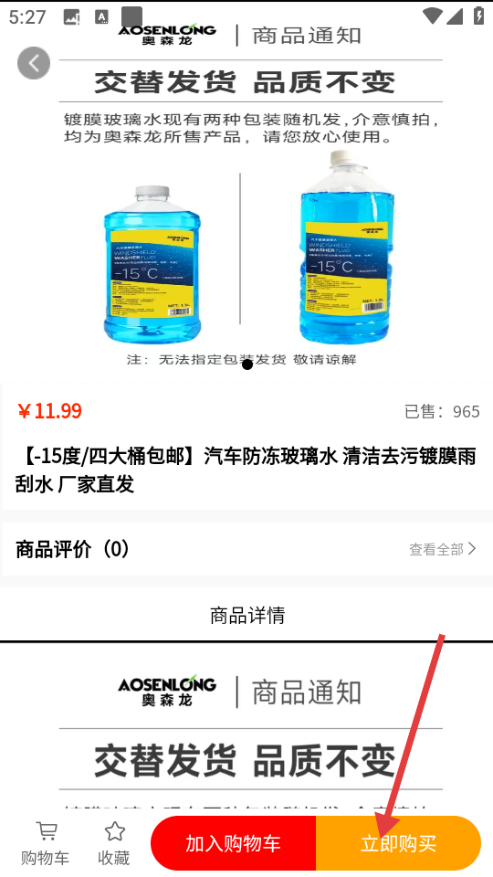 3、在商品详情页,点击【立即购买】按钮,进入确认订单界面。