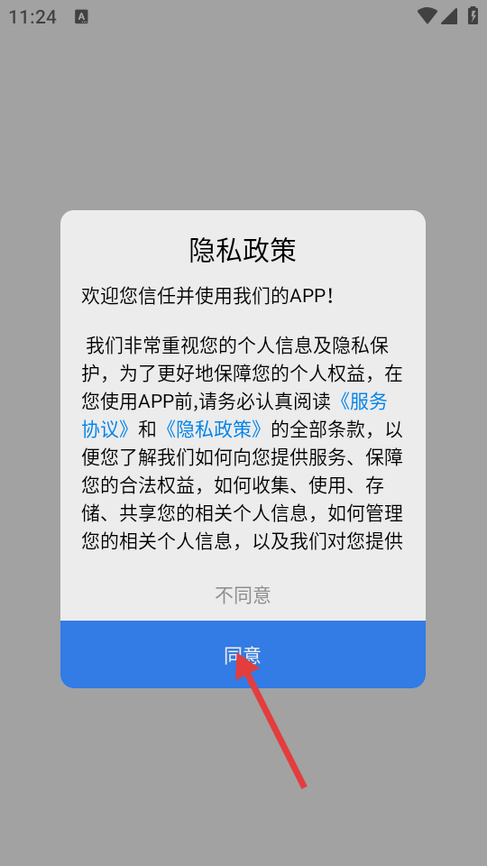 1、打开APP,在“隐私政策”提示框中点击【同意】,进入主界面。
