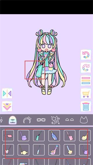 2、切换到饰品栏挑选装饰道具,点击应用到角色上身区域,增添装扮的细节亮点。