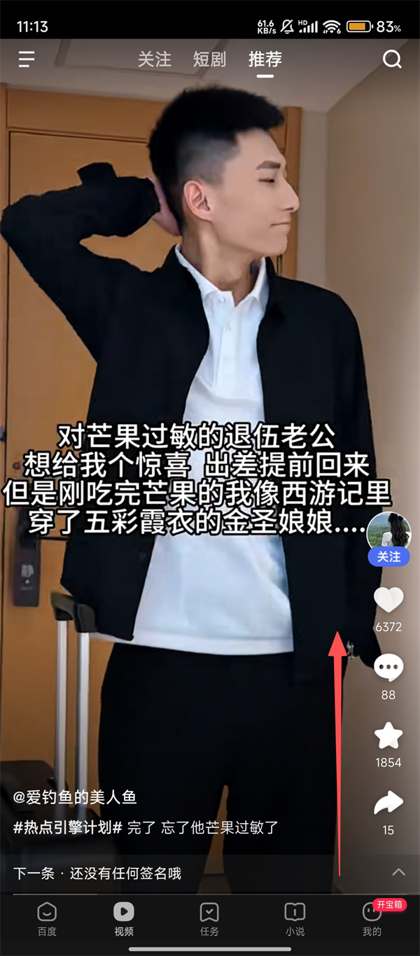 2、在视频页面,向上滑动屏幕,就能不断浏览更多推荐视频,总有一款合你心意。