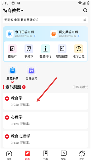 2、在题库页面,选择如【教育学】这样的学科,进入该学科的刷题板块呢。