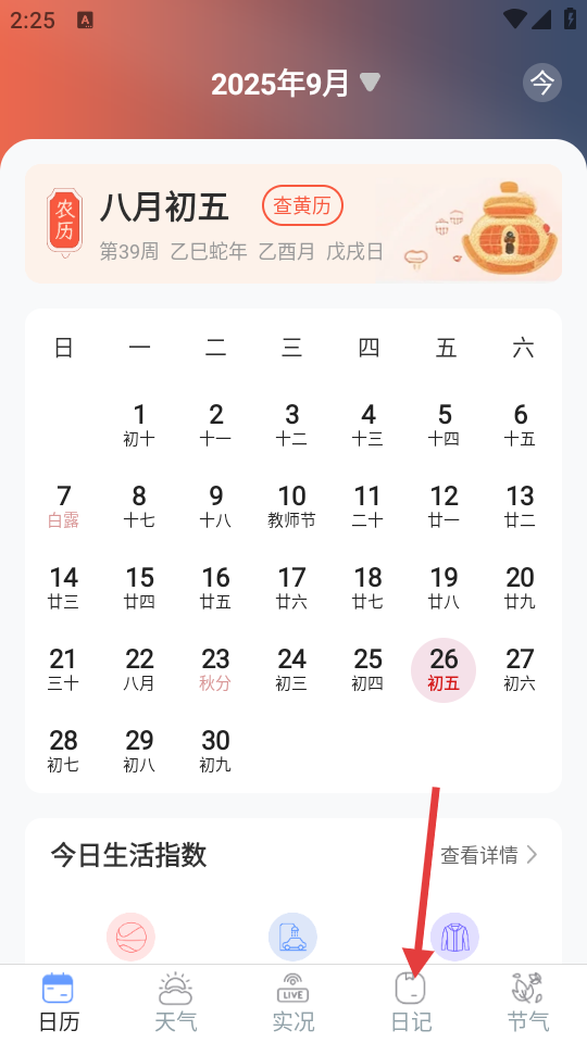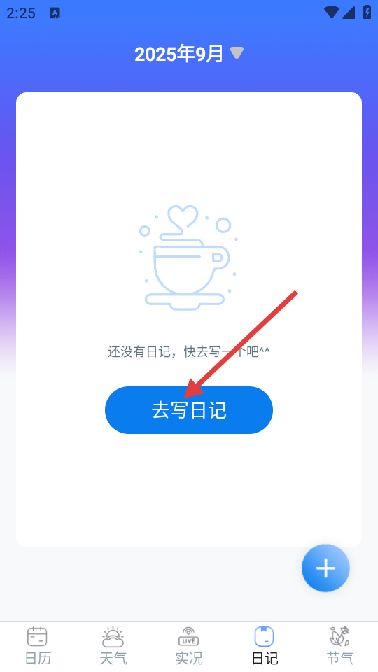 2、进入应用后,点击底部导航栏中的【日记】选项,进入日记页面。
