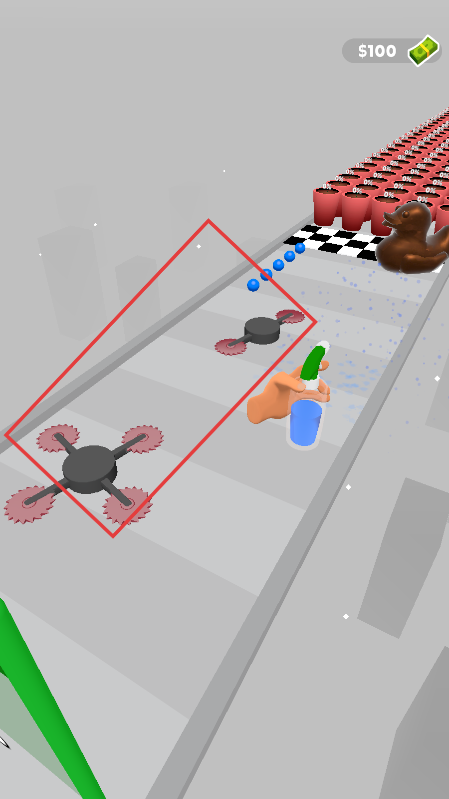 3、避开红色齿轮等障碍物,继续用喷雾收集蓝色小球。