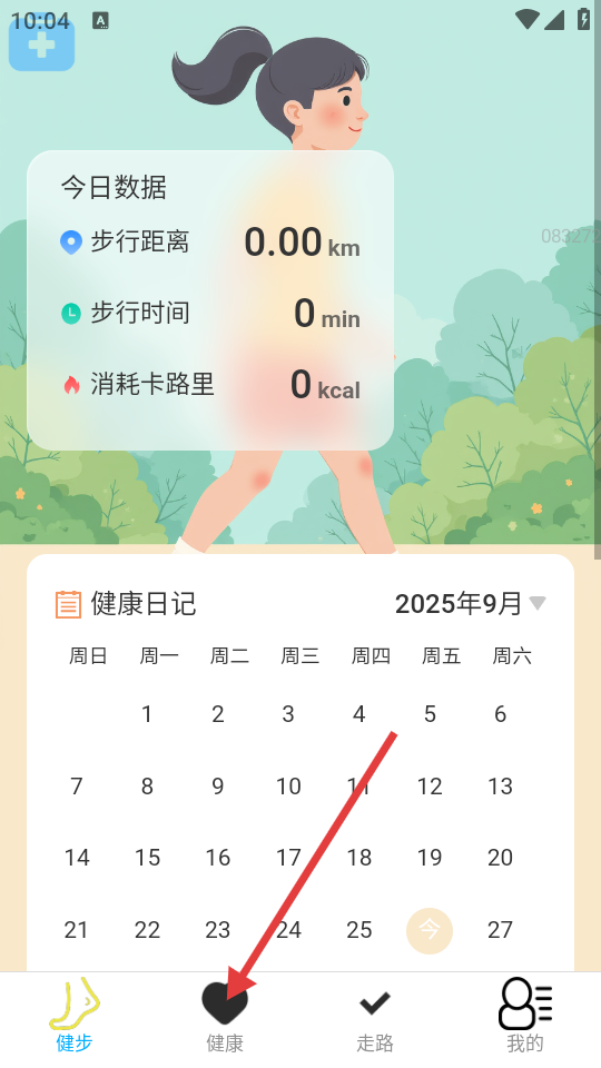 1、打开app,点击底部的【健康】选项,进入健康页面。