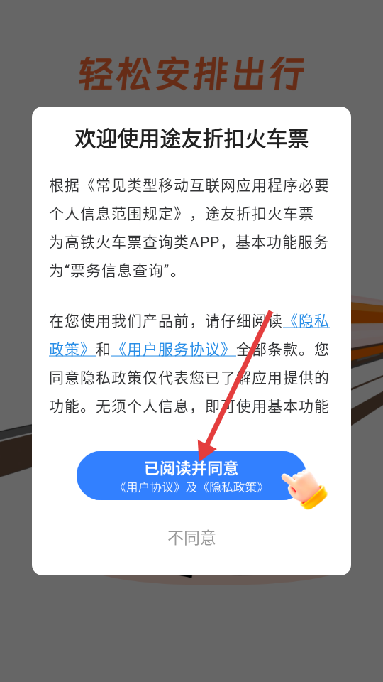 1、点击【已阅读并同意】,接受《用户协议》及《隐私政策》,进入应用主界面。