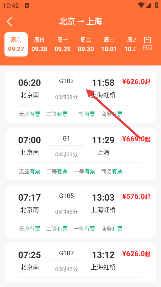 1、快速查询方法:选择出发到达城市与乘车日期后,系统自动列出所有符合条件的车次信息并按时间排序展示。