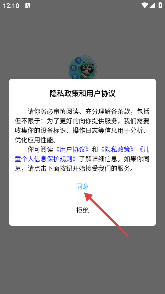 1、首次使用时,仔细阅读【隐私政策和用户协议】,点击【同意】按钮,即可进入APP。