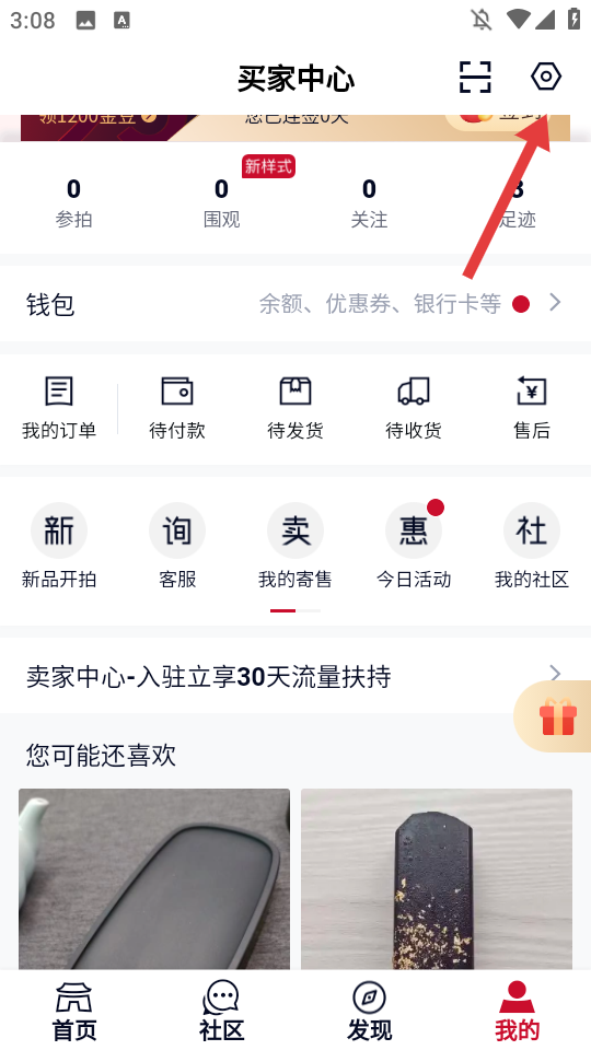 2、在个人页面点击右上角设置图标,进入设置界面。