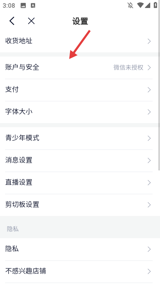 3、在设置界面点击【账户与安全】,进入账户与安全页面。