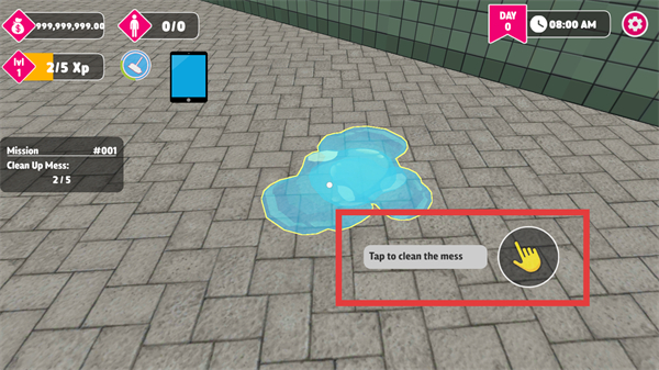 2、发现水迹污渍时,点击该区域触发清洁,逐步推进任务进度。