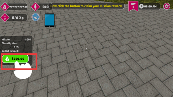 4、清洁任务完成后,点击绿色按钮领取【$250.00】奖励,获取经验升级。